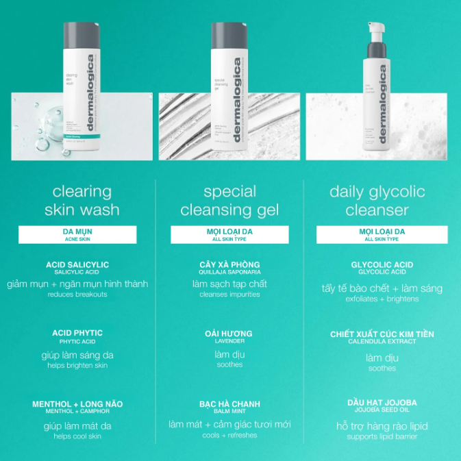 • Làm sạch dầu thừa mà không làm khô hoặc bong tróc da